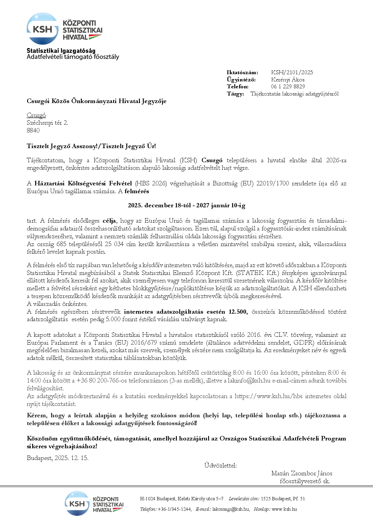 Tájékoztatás lakossági adatgyűjtésről Kiemelt