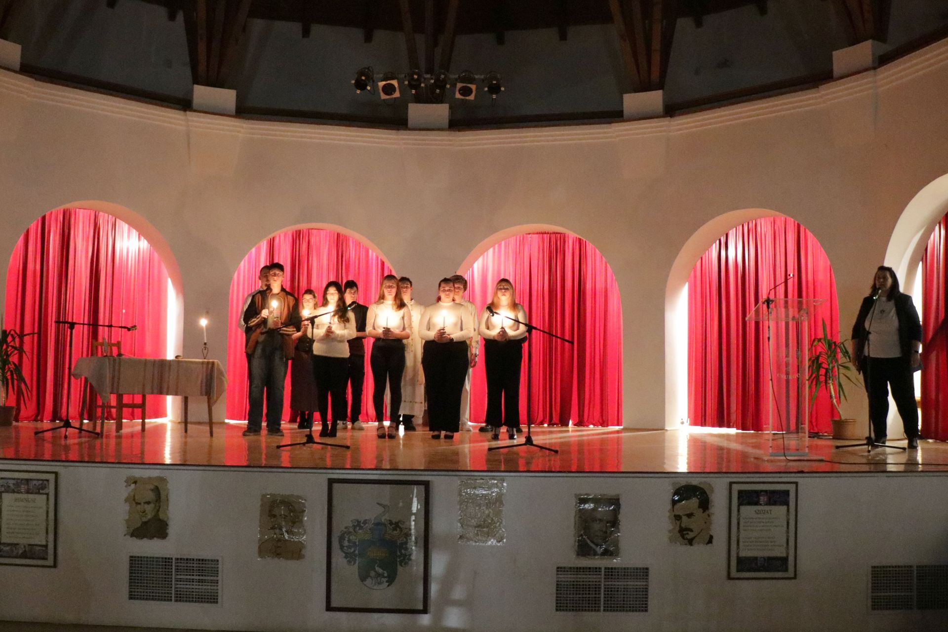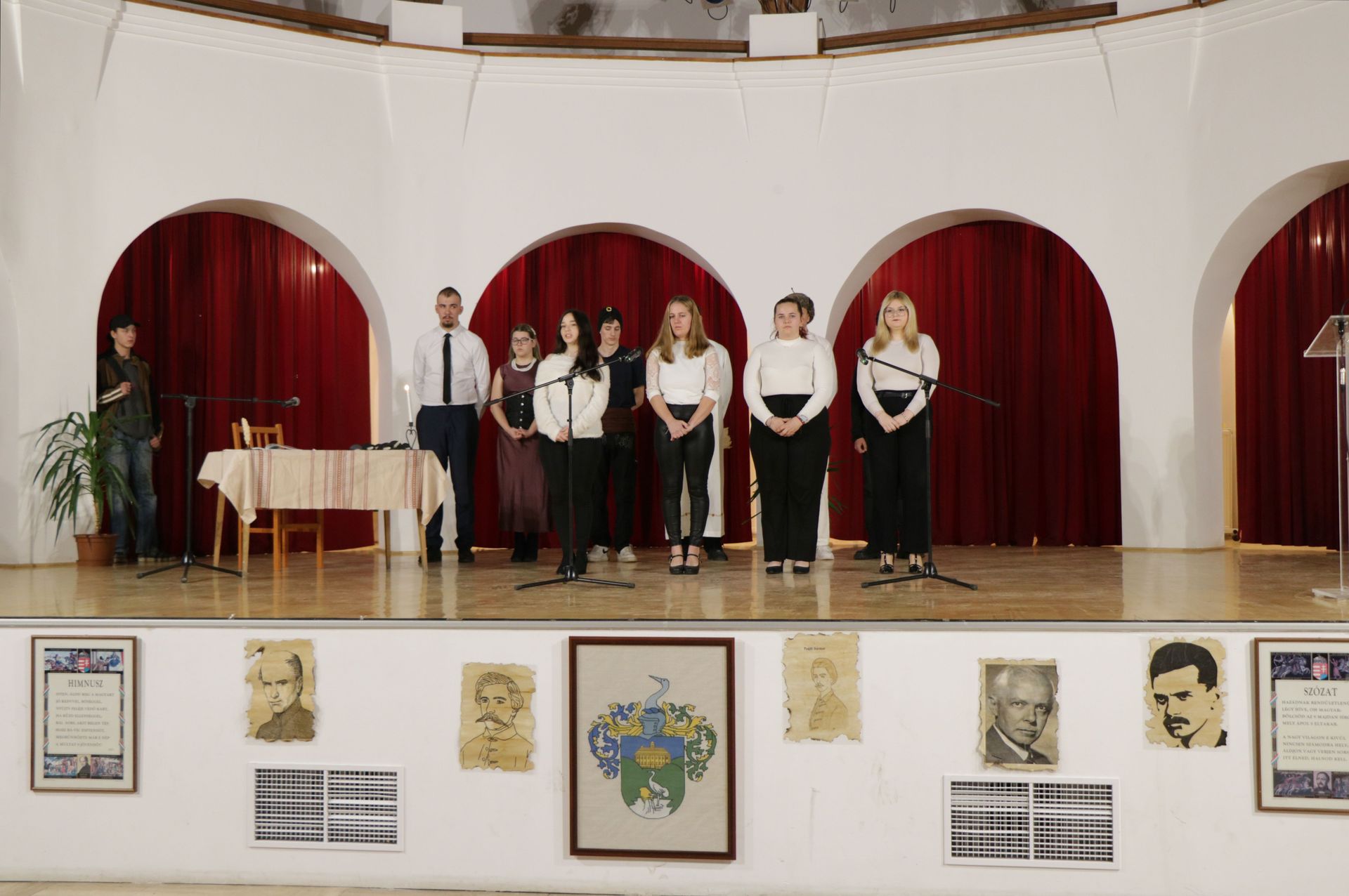 A műsor következő részében a Kolping Nagyváthy János Technikum, Szakgimnázium, Szakképző Iskola és Kollégium diákjainak műsorát láthatták a jelenlévők. Színvonalas, történelmünket kulturálisan végig kísérő, nívós produkcióban volt részünk. Felkészítő tanáruk, Törökné Tóth Anita megajándékozott bennünket saját előadásával is.