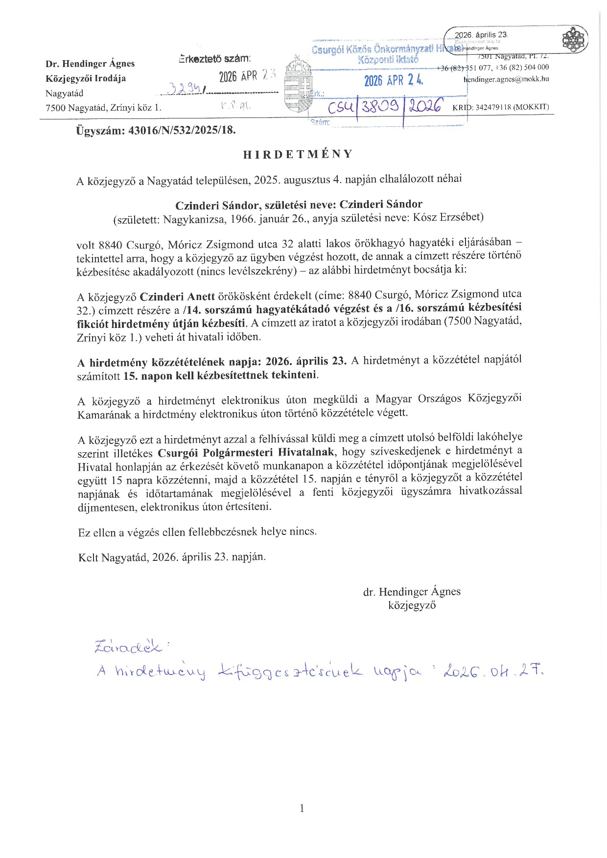 Hírdetmény Kiemelt