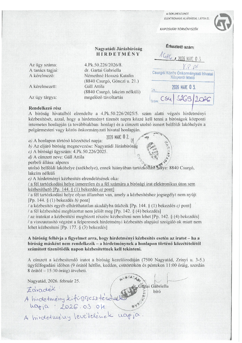 Hirdetmény Kiemelt
