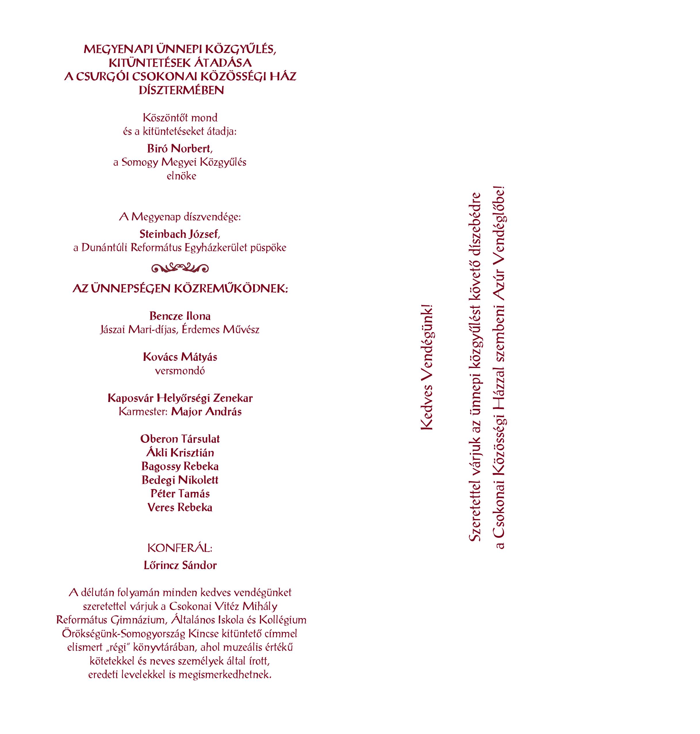 Csurgó Város Képviselő-testülete 2016. augusztus 30-án (kedd) 16:30 órakor a Baksay S. u. 9. szám alatt tartja képviselő-testületi ülését, amelyre ezúton tisztelettel meghívom.