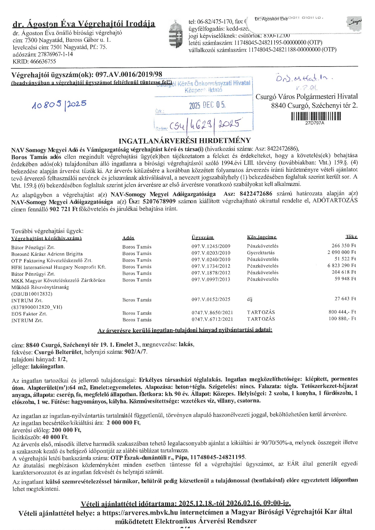 Árverési hírdetmény Kiemelt